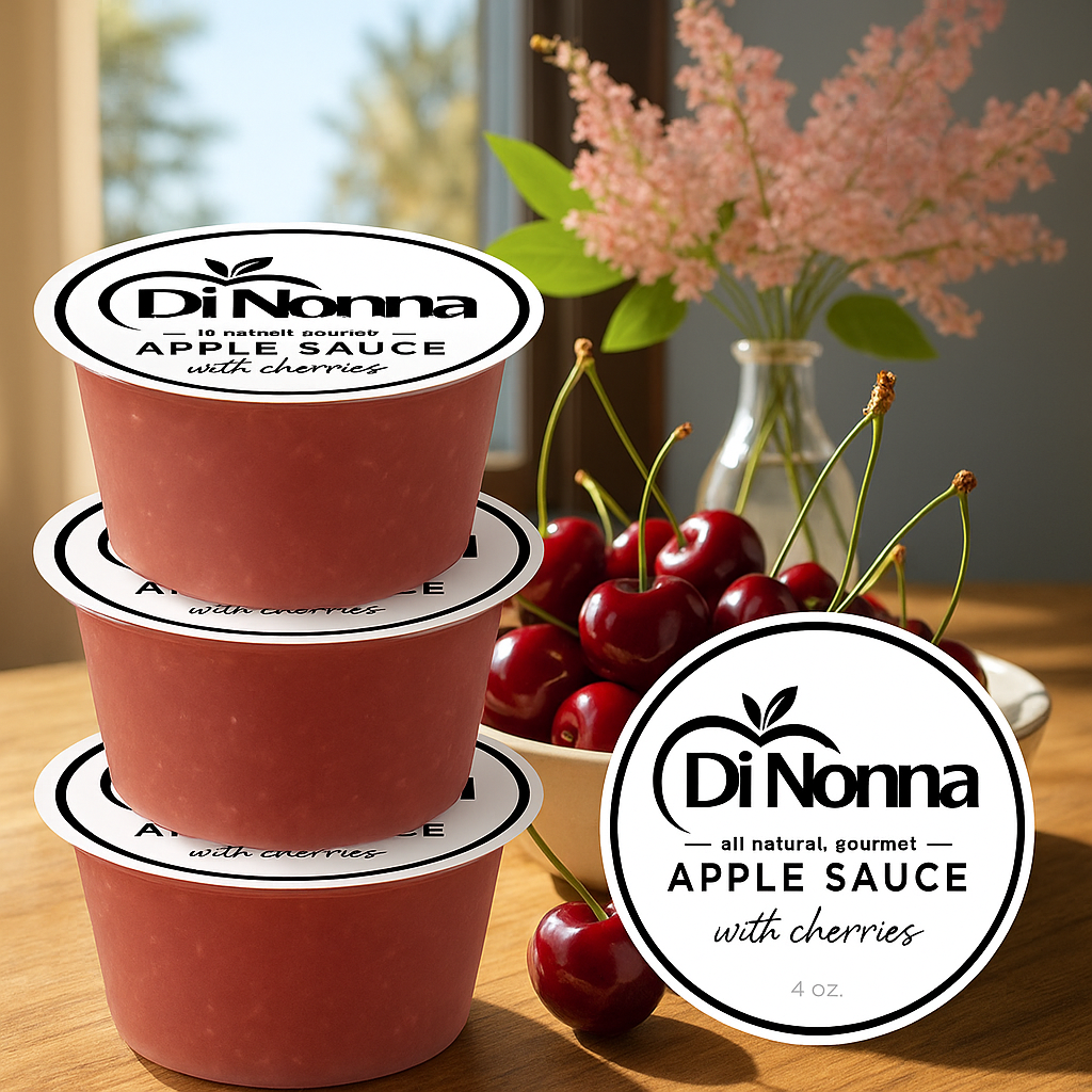 Di Nonna's Apple Sauce with Cherries 12 Pack Cups – a delightful fusion of crisp apples and succulent cherries in convenient individual servings. Crafted with premium ingredients, each cup bursts with natural sweetness and tanginess, perfect for on-the-go snacking or lunchbox treats. Experience the harmonious blend of flavors with Di Nonna's Apple Sauce with Cherries, conveniently packed for freshness and satisfaction. Upgrade your snacking game with Di Nonna today!